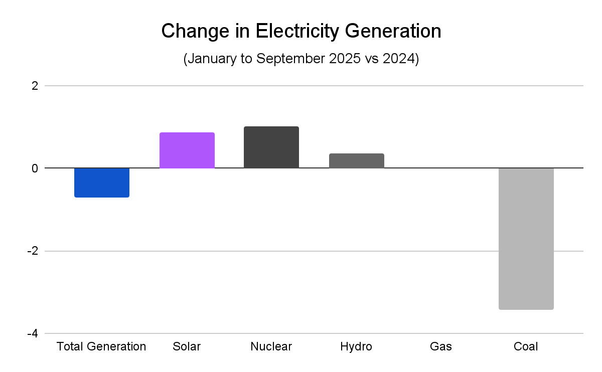 However when isolating South African data, amid a drop in total electricity generation from January to September 2025 of 720 GWh vs the same period in 2024, solar energy generation actually increased by 880 GWh in the same period.